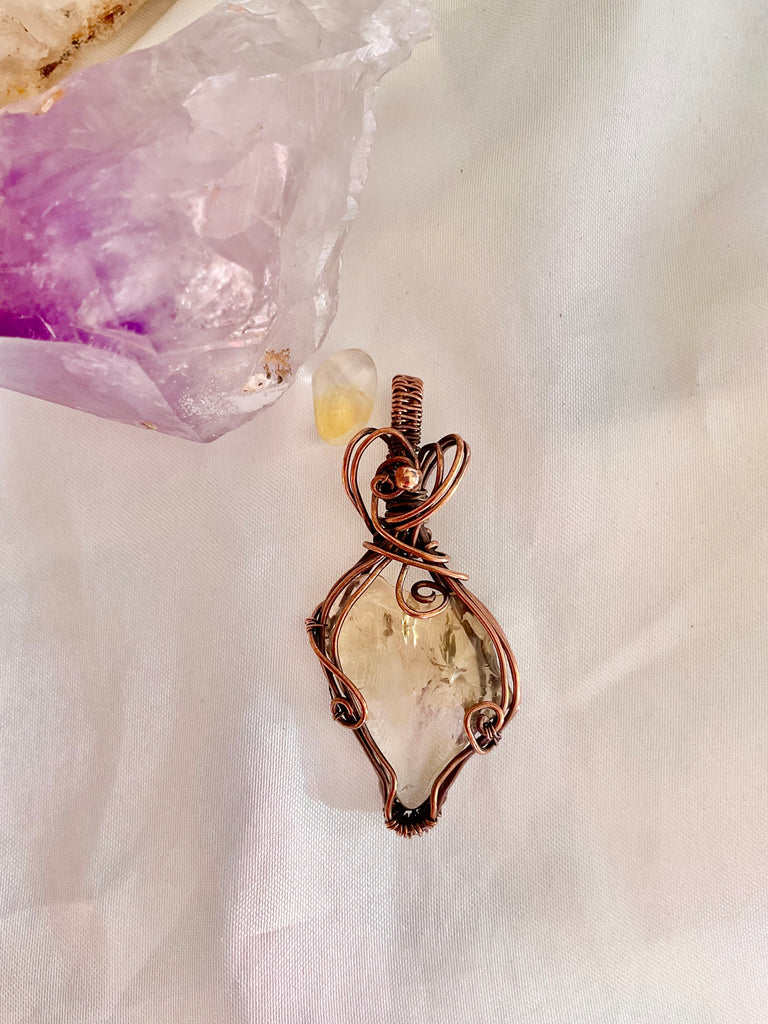 Handmade Ametrine Pendants– Copper Wire Wrapped Crystal Necklaces
