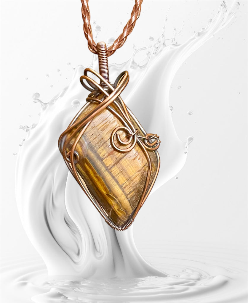 This beautiful Golden Tiger Eye Large Wire Wrapped Pendant is 65mm from the bail. The ancient Egyptians used Tiger's Eye to transmit the power of the Sun God Ra, to create material success. It is thought to bring strength, protection, and success into your life, and is perfect for anyone looking to invoke feelings of self-worth, peace, and balance.