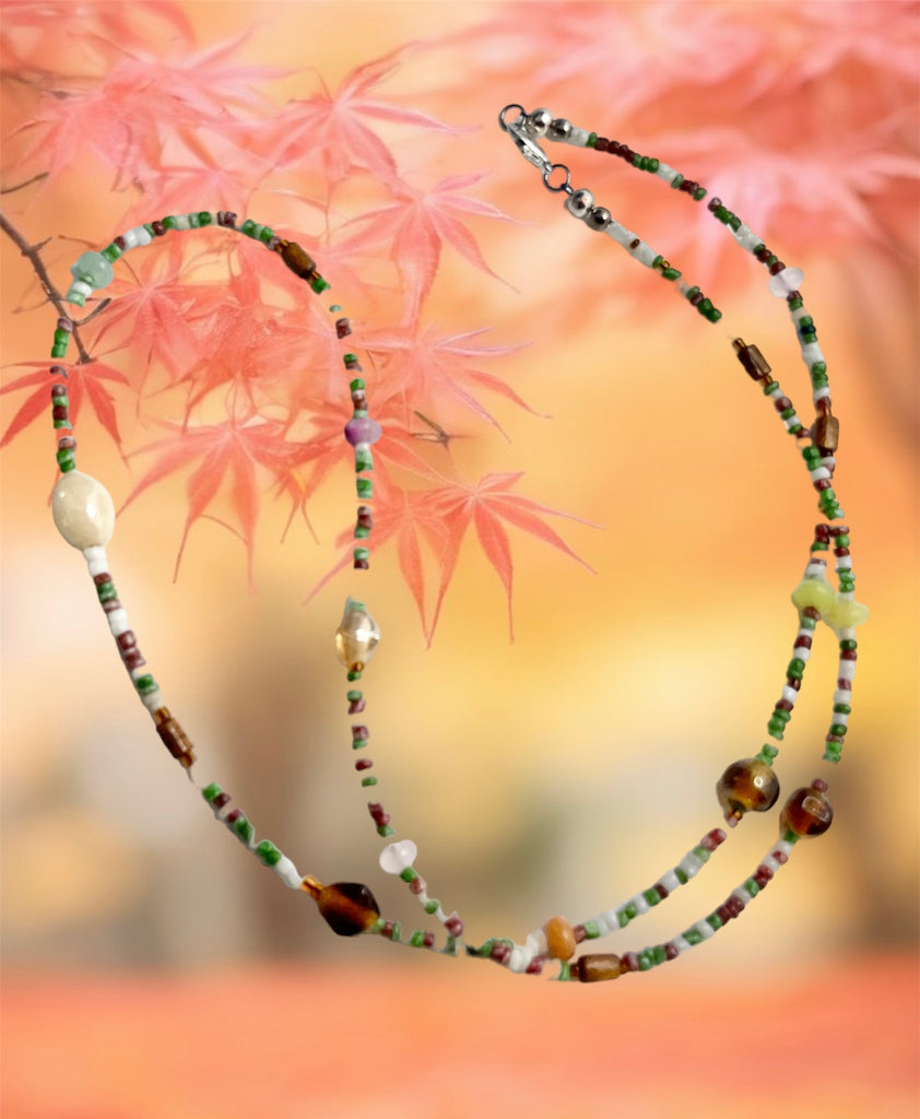 Indulge in the beauty of the Hippie Boho Beaded Necklace, made with a variety of stunning crystals, gemstones, glass beads, wooden beads, rose quartz, anventurine, Sugilite and seed beads. With its unique combination of materials, this necklace adds a touch of elegance and bohemian flair to any outfit. Elevate your style and stand out from the crowd with this exquisite piece of jewellery!