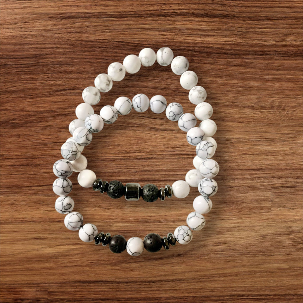 Crafted with a balance of black matte and white marbled beads, this versatile set complements any outfit—from casual looks to chic ensembles. Wear them stacked together or mix and match to suit your vibe.
