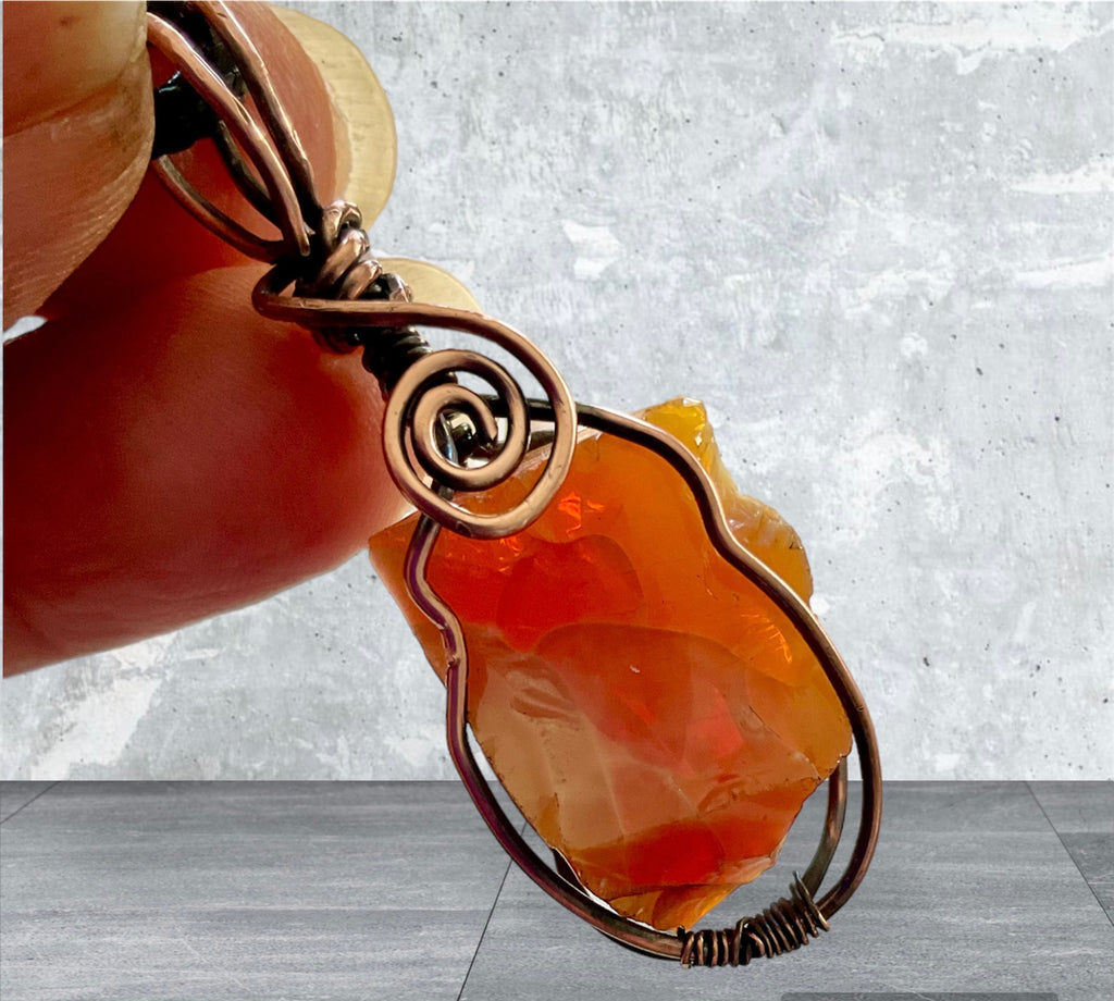 Mexican Fire Opal Wire Wrapped Pendant