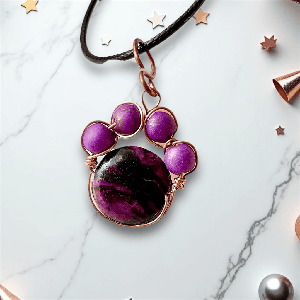 Celebrate the unconditional love of your furry companion with our Pet Paws Pendants—each one handcrafted with care and meaning. These unique pendants feature copper wire shaped into a sweet paw print, accented with semi-precious gemstones chosen for their powerful energy and symbolism.