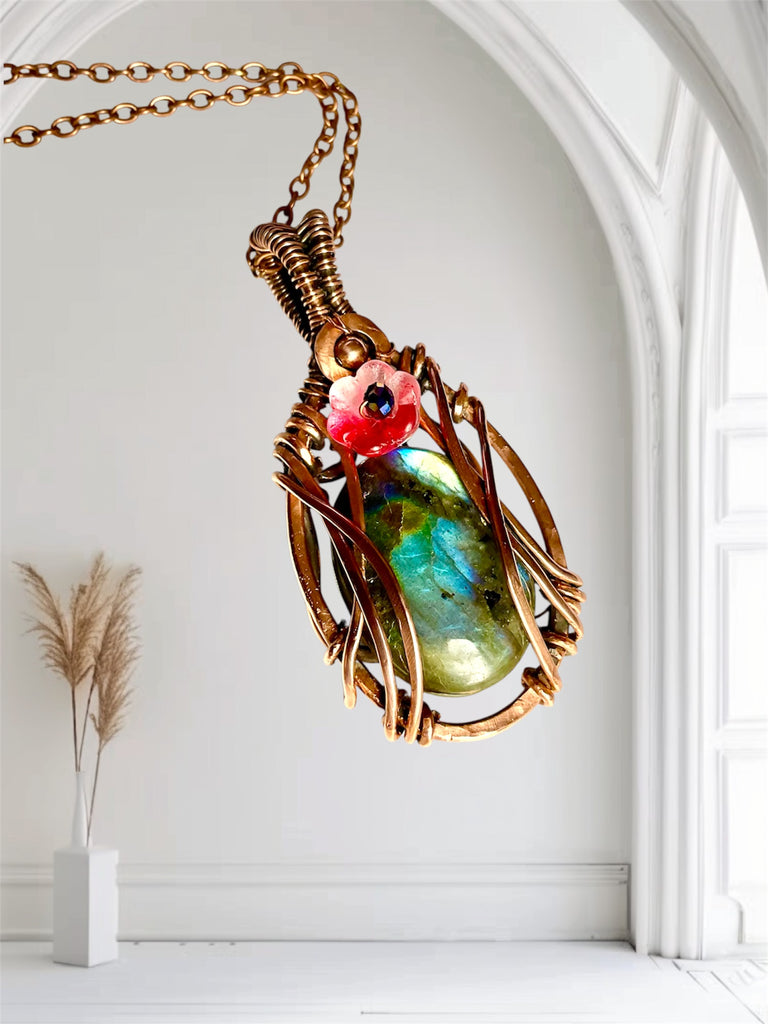 ✨ This beauty has had a little facelift ✨ I reworked the wire wrap to let the labradorite shine more clearly and added a flower accent.